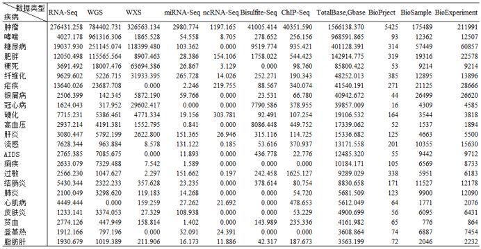 熱點(diǎn)研究疾病數(shù)據(jù)統(tǒng)計(jì)(單位:Gbase)