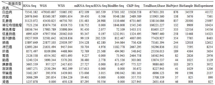 熱點(diǎn)癌癥數(shù)據(jù)統(tǒng)計(jì)(單位:Gbase)